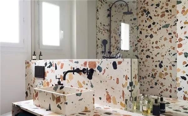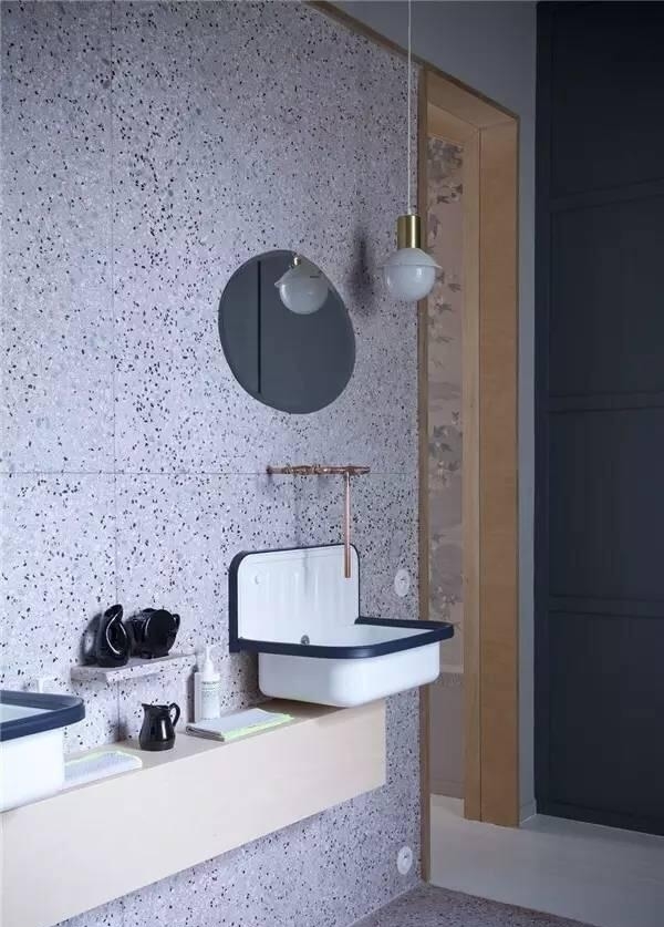 很眼熟吧?沒錯!你印象里曾經(jīng)學校、醫(yī)院樓道的標配,另外還有傳統(tǒng)建筑的外墻面……都是水磨石。是不是感覺這都已經(jīng)是一個世紀前的產(chǎn)物了?其實水磨石是相當耐磨耐用的,只是略顯廉價。好在如此有內(nèi)涵的材質(zhì),在設(shè)計師的腦洞里又煥發(fā)了新生。如同之前火爆的水泥和大理石一樣,從桌椅、水槽到小物件,有些雖然只是用了水磨石的顏色和紋理,但其成為家裝爆品已是必然。